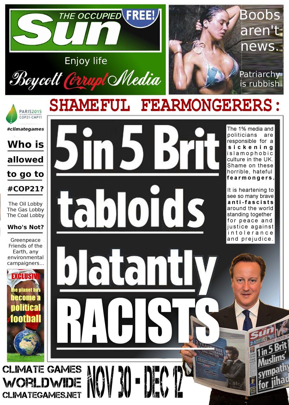 Here’s The S*n’s offensive front page and The Occupied Sun‘s corrected version: