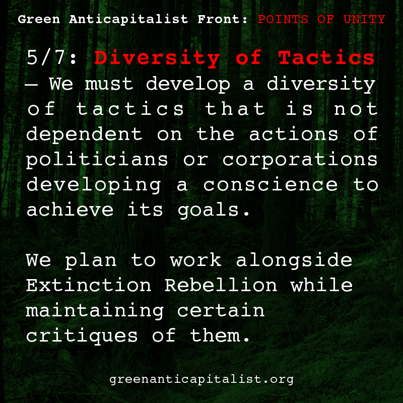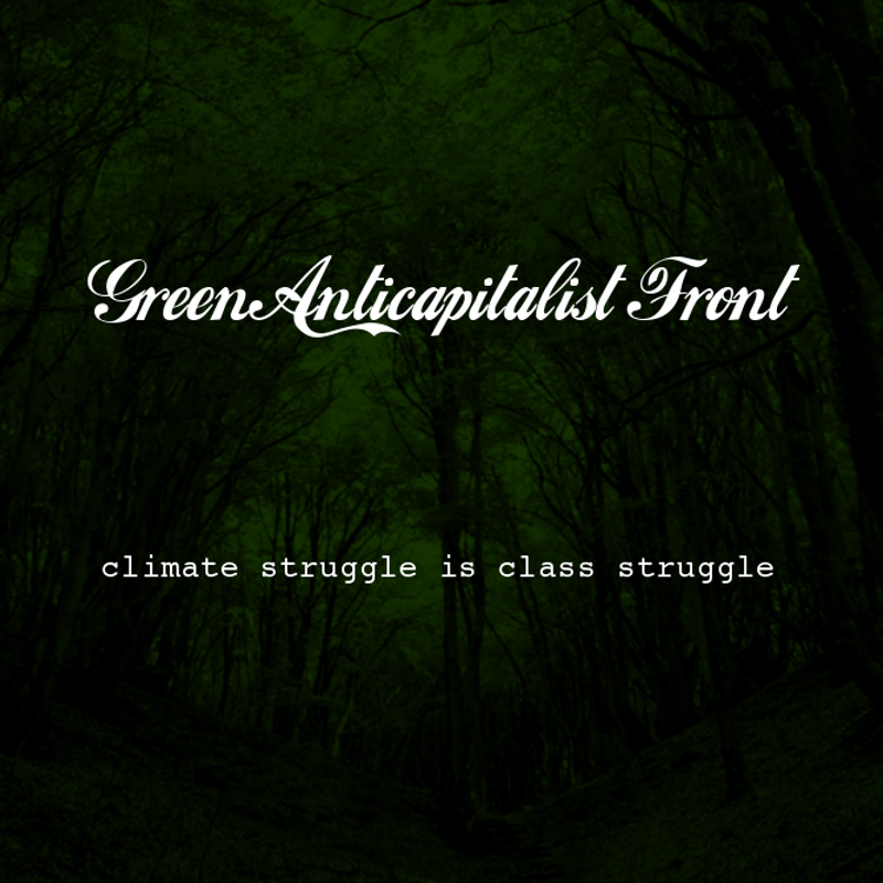 “The Green Anti-Capitalist Front is an alliance of groups and individuals united by a belief that capitalism is one of the core causes of the environmental crisis threatening us all, and that if we do not act soon the costs of that crisis will fall on the poor and powerless.”