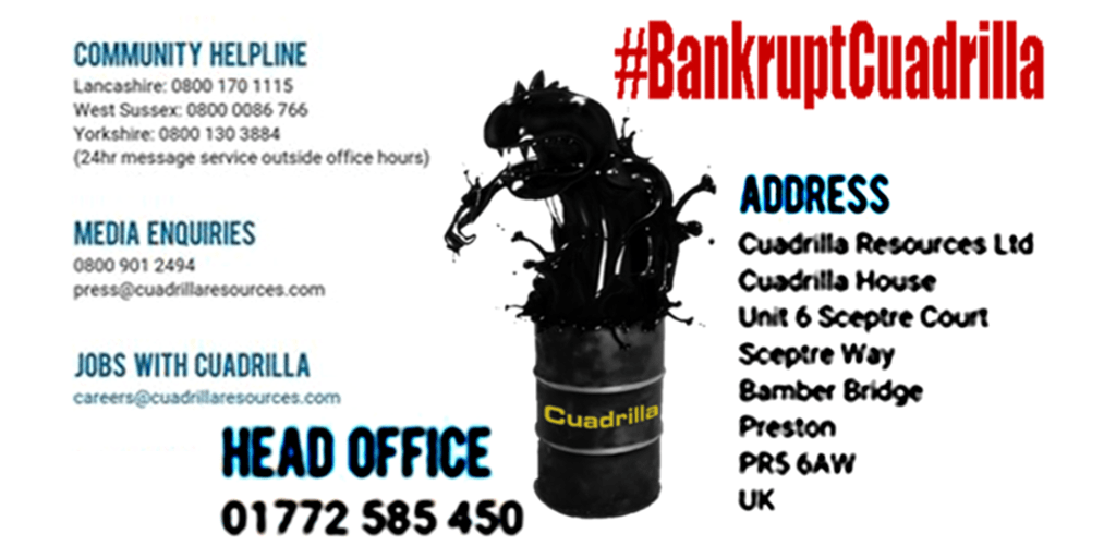 Remind the odious corporation that #WeSaidNo and still, #WeSayNo! If they don’t #FrackOff once and for all, we’re going to #BankruptCuadrilla!