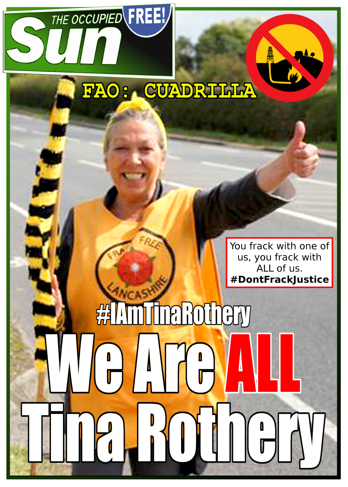 FRACKING MONSTERS, CUADRILLA ARE TRYING TO JAIL TINA-LOUISE ROTHERY FOR DARING TO STAND UP TO THEM.