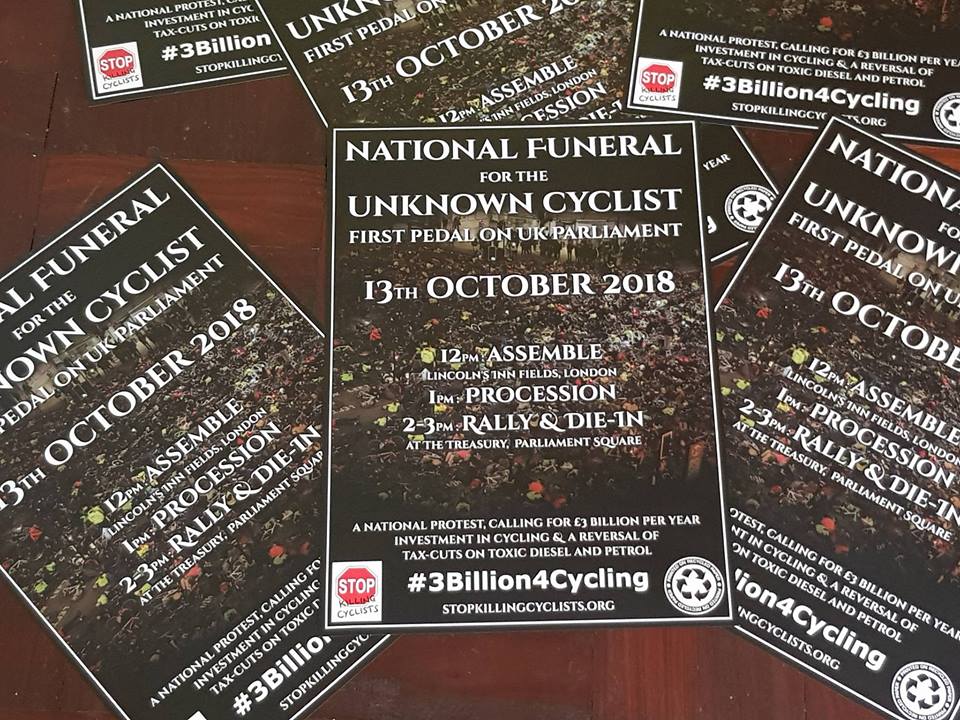 This year’s National Funeral for the Unknown Cyclist hopes to be the largest ever Die-In in UK history, to ensure the Chancer of Death, Phillip Hammond, the incumbent PM, Jeremy Corbyn and his incumbent Shadow Chancellor, John McDonnell hear two clear demands for the Autumn budget.